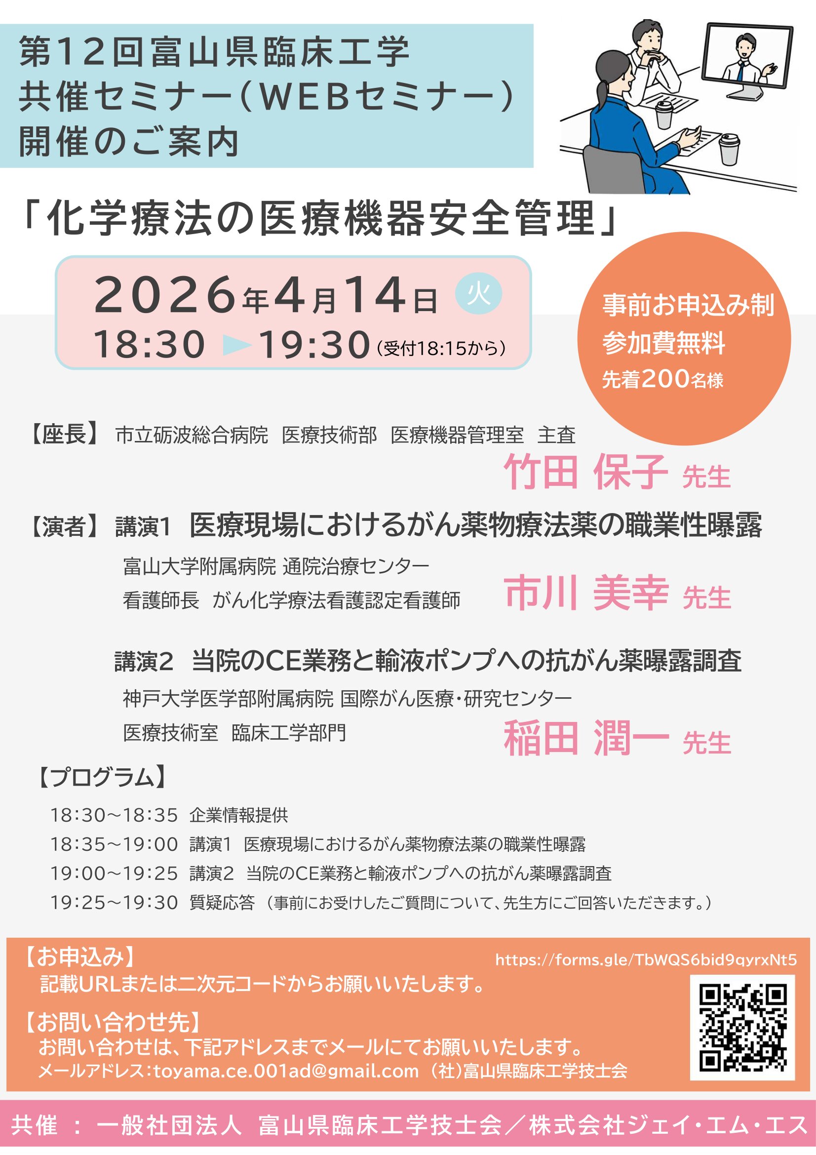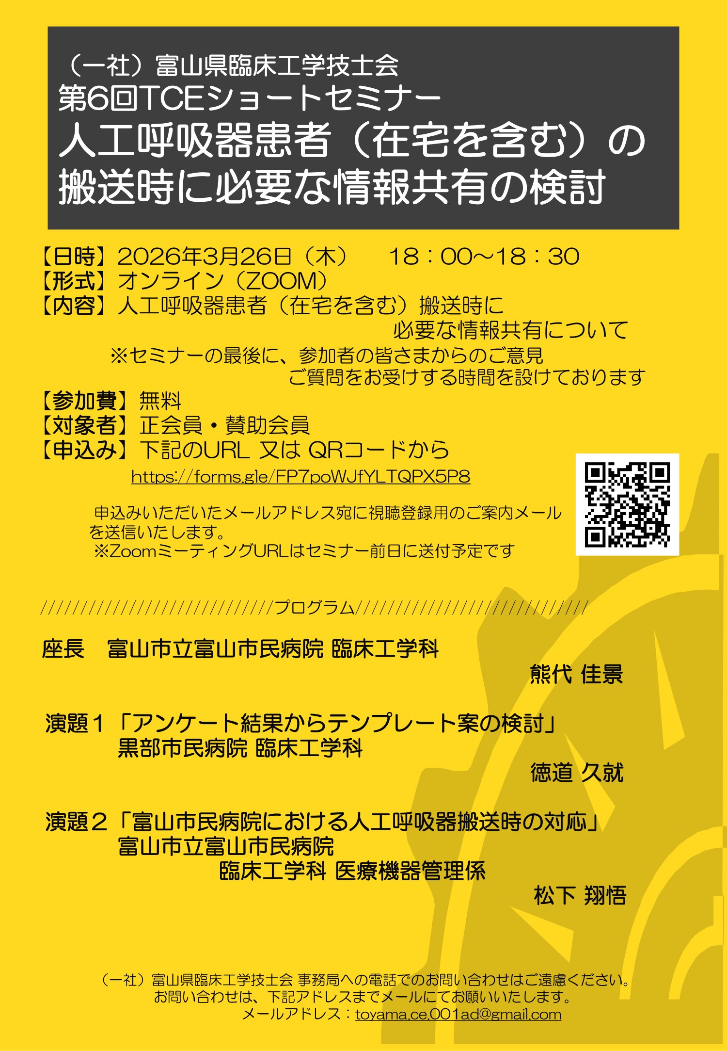 第51回 富山県臨床工学セミナー開催のお知らせ 掲示しました。