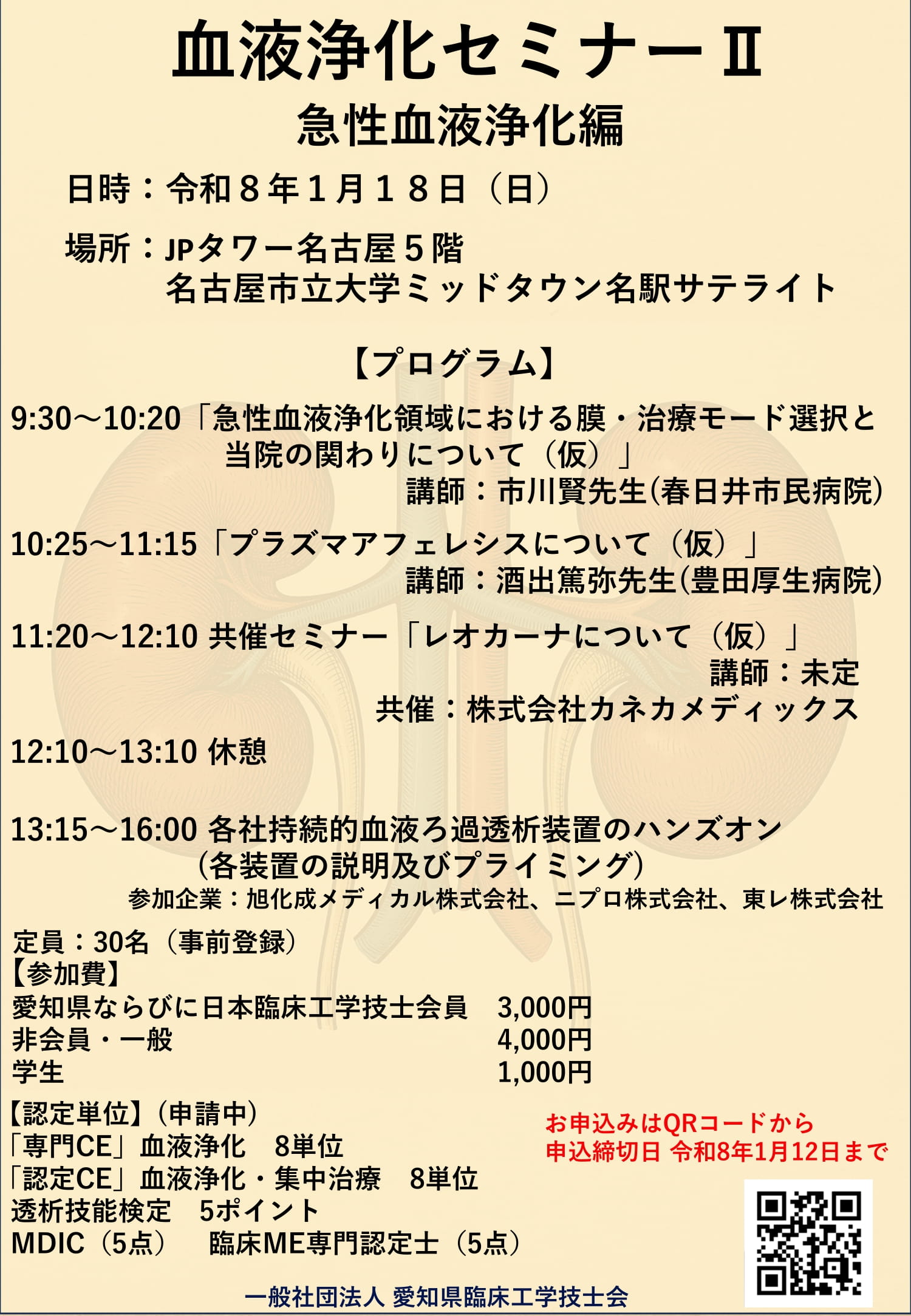 [受講料]:愛知県ならびに日本臨床工学技士会会員3,000円