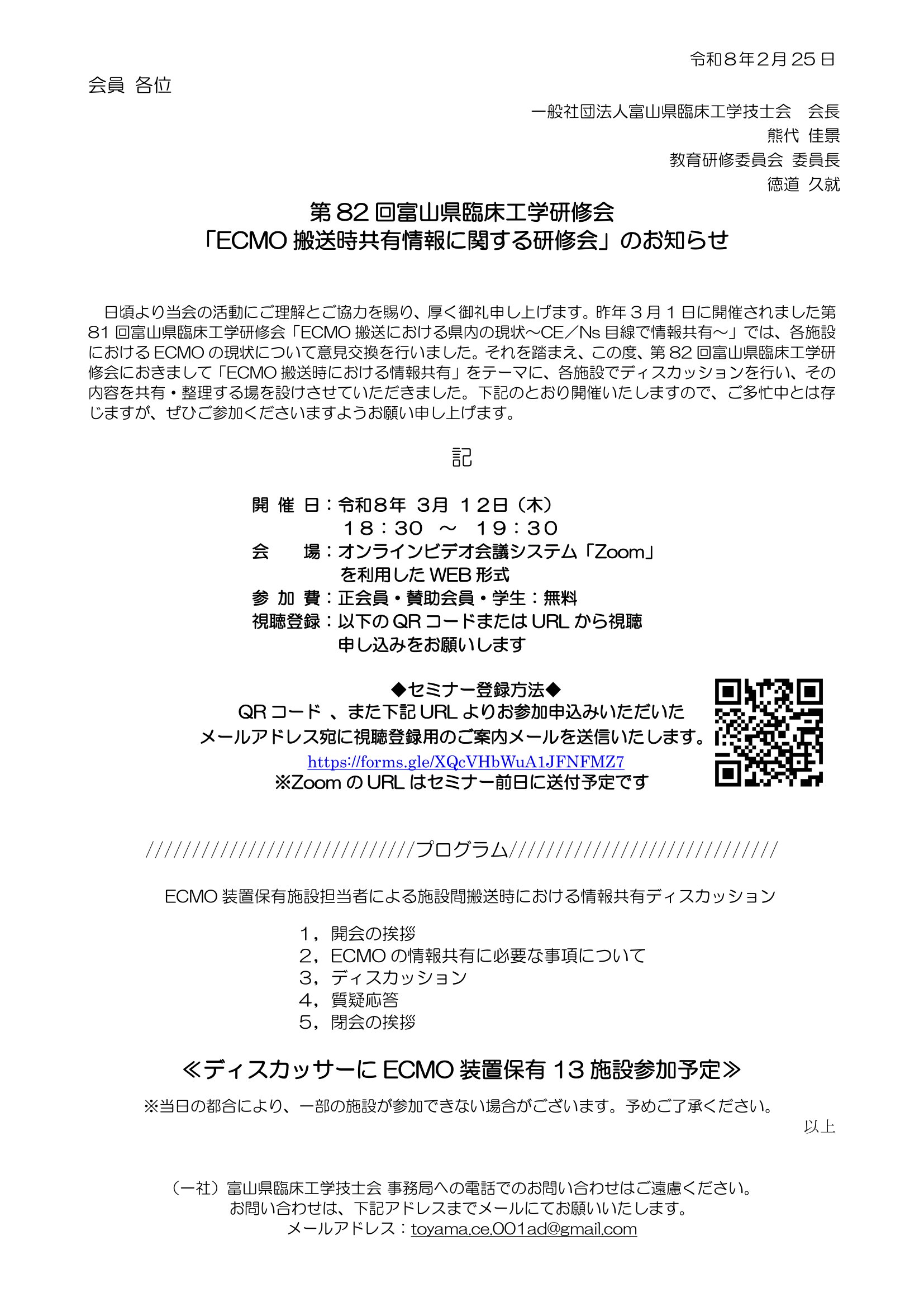 第82回 富山県臨床工学研修会 開催のお知らせ